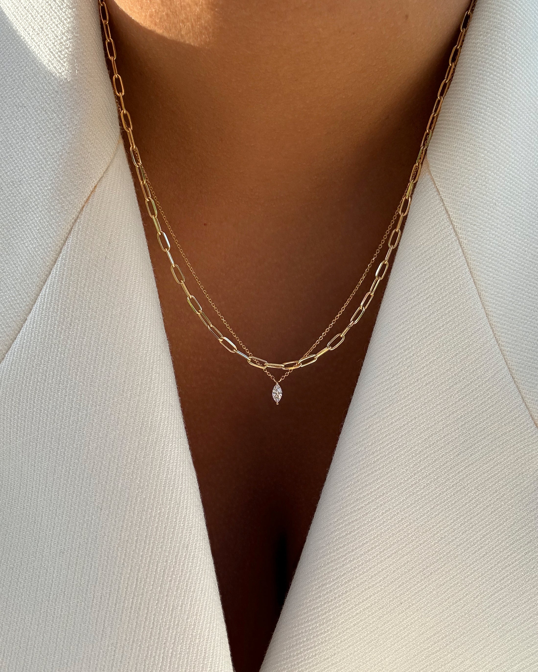 A refined modern day essential, minimal and effortlessly wearable. This single marquise diamond necklace is perfect for layering or wearing solo, bringing a touch of sparkle to your everyday style.
