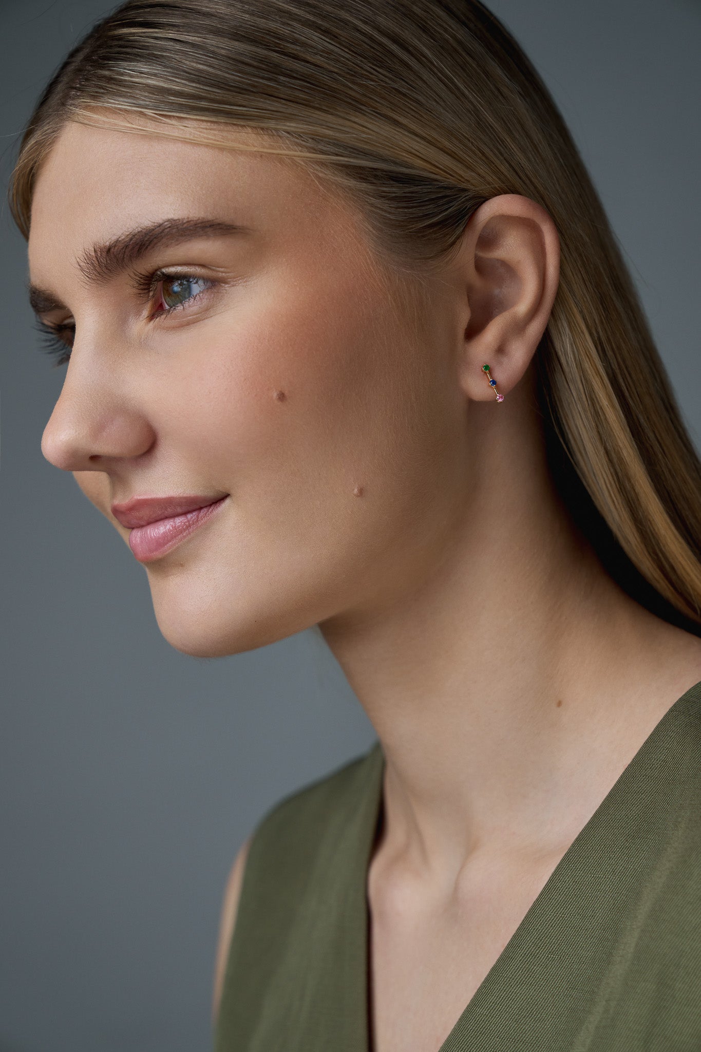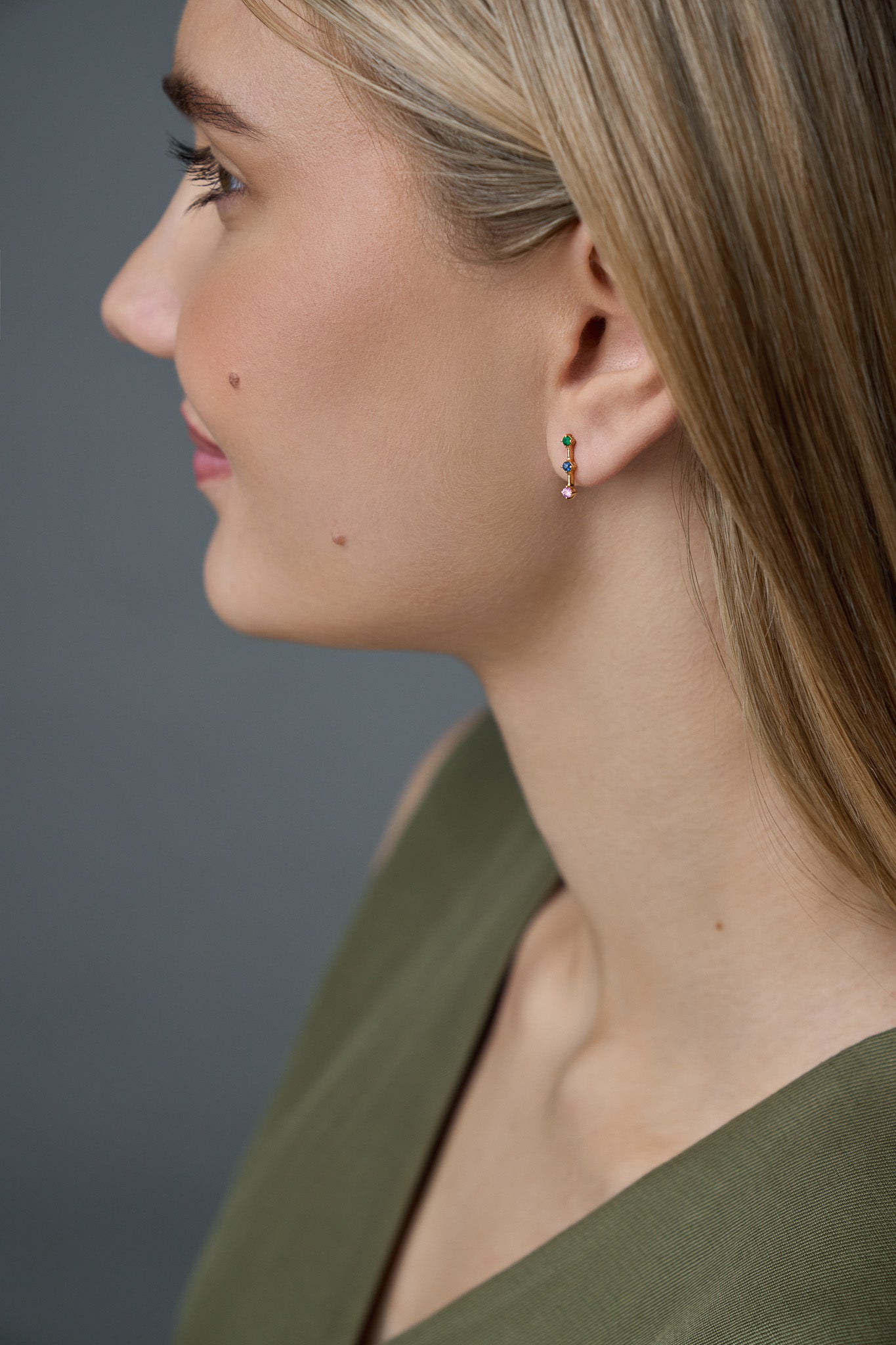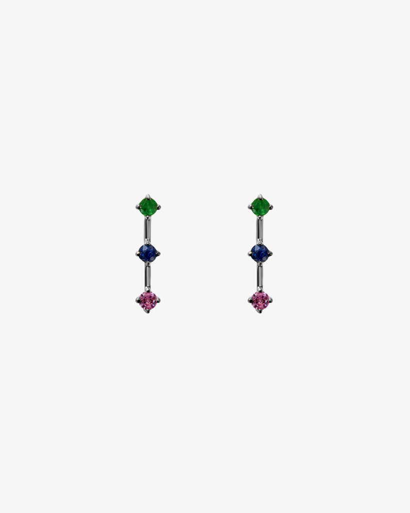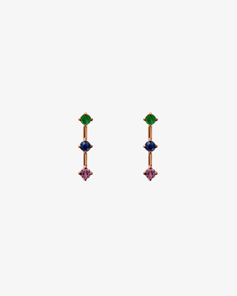 A trio of emerald, deep blue sapphire, and deep pink sapphire set in polished gold. Minimal yet expressive, these earrings bring a playful touch to everyday dressing while staying refined in their simplicity. Crafted with intention and highest quality, joyful in spirit, timeless in form.