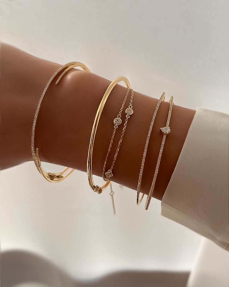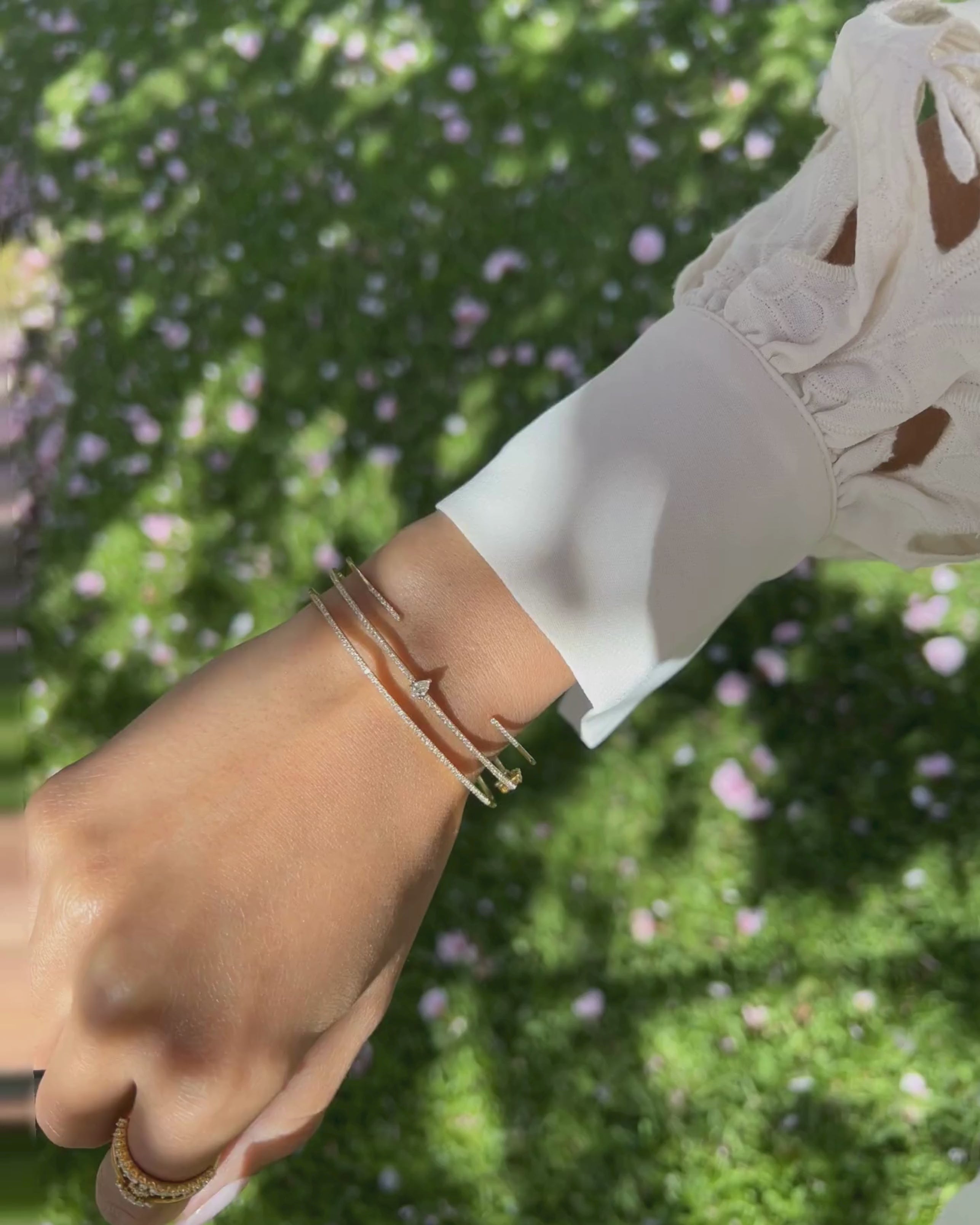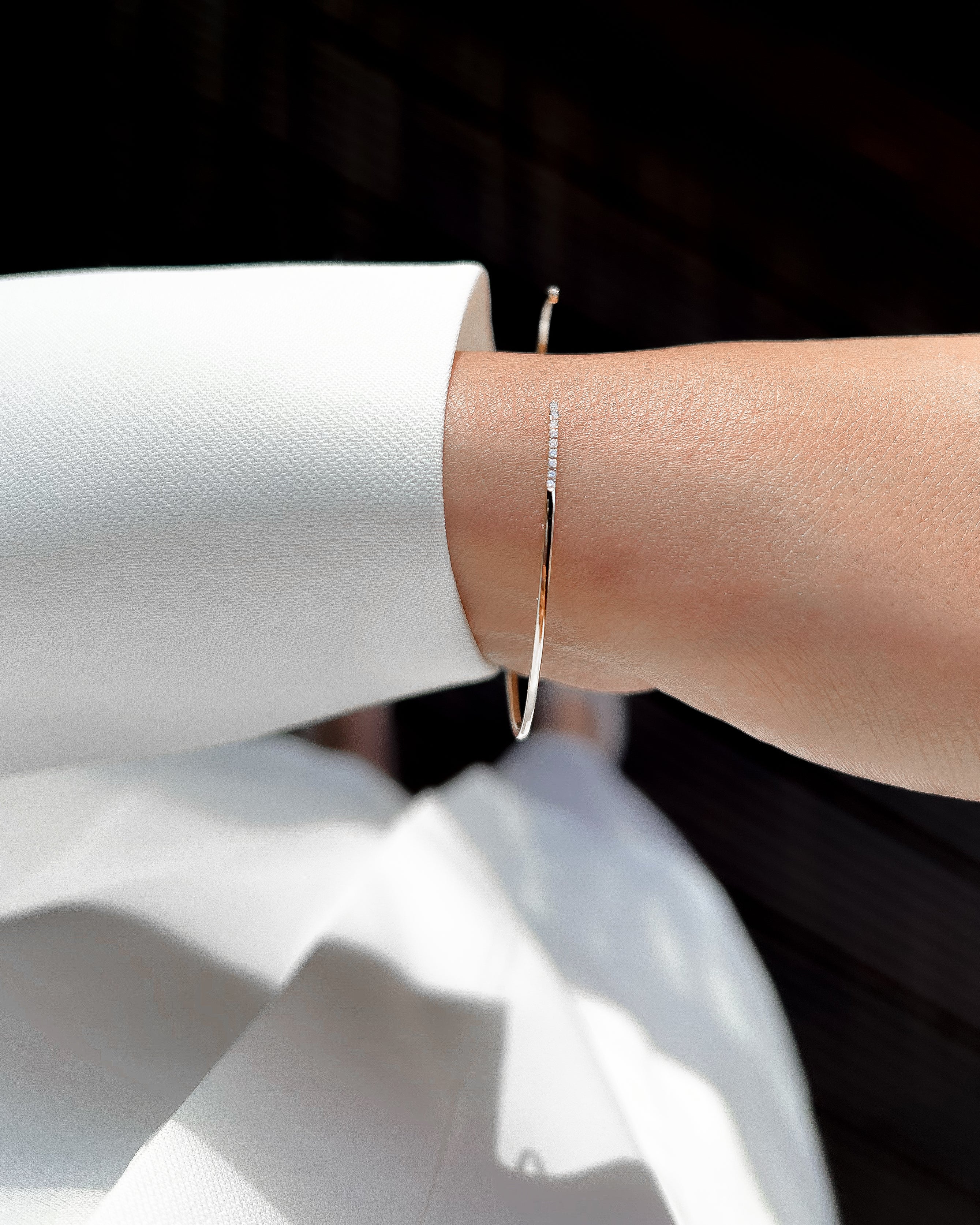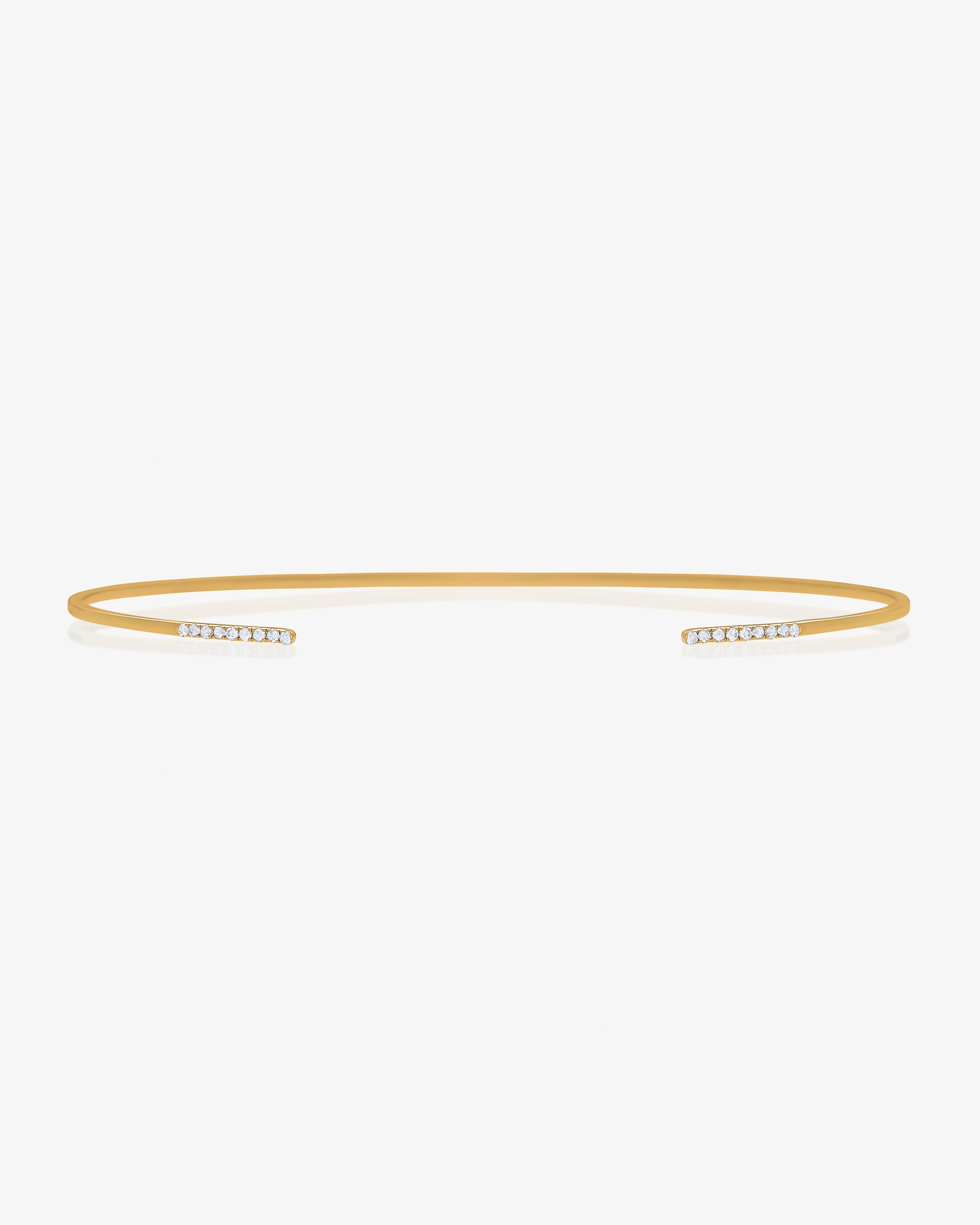 The Whisper Diamond Cuff is defined by its barely-there silhouette and refined simplicity. Crafted in solid 18k gold and accented with natural diamonds, it is designed to feel light, quiet, and intentional. A delicate statement that sits close to the skin, this cuff embodies softness through precision rather than excess.
