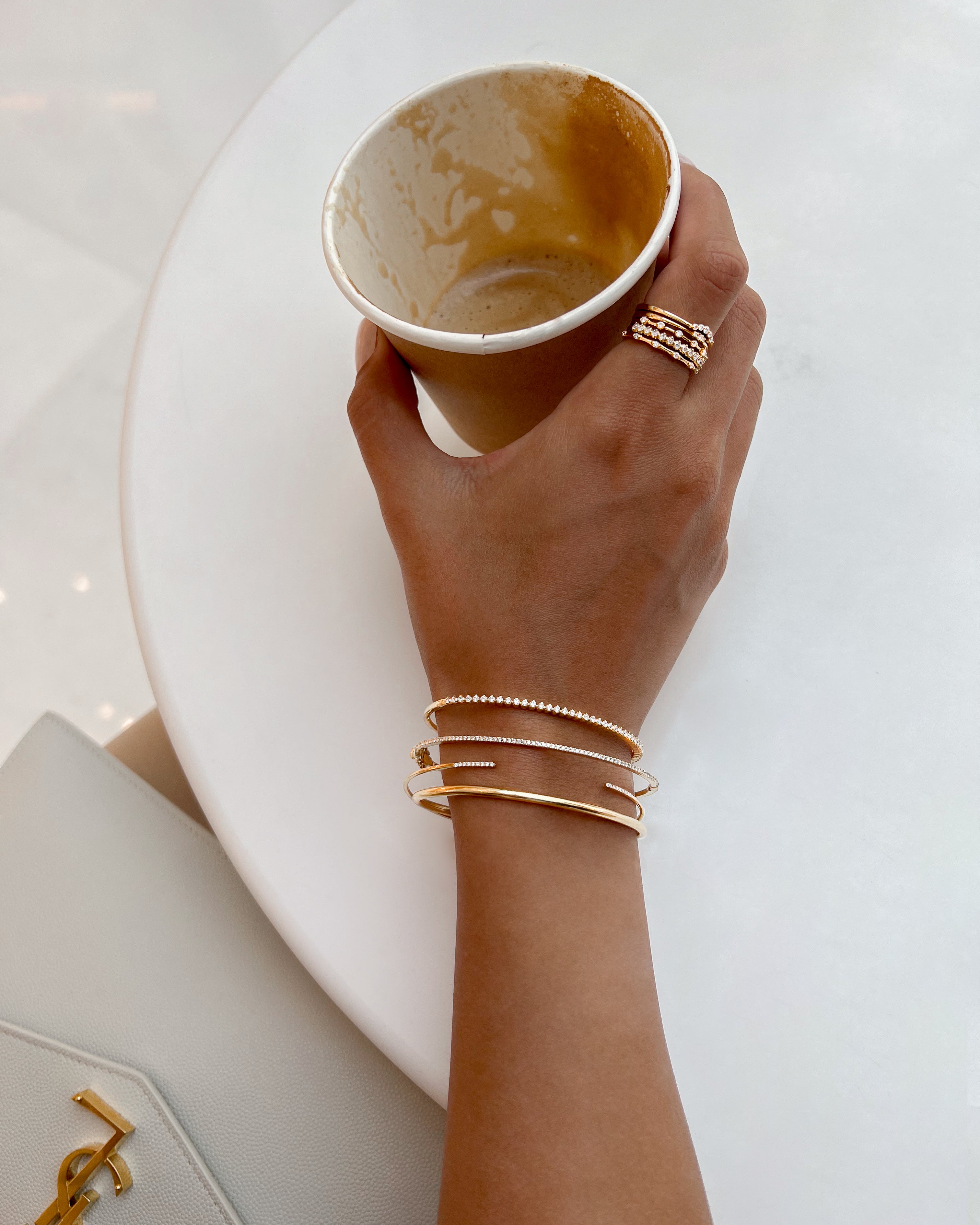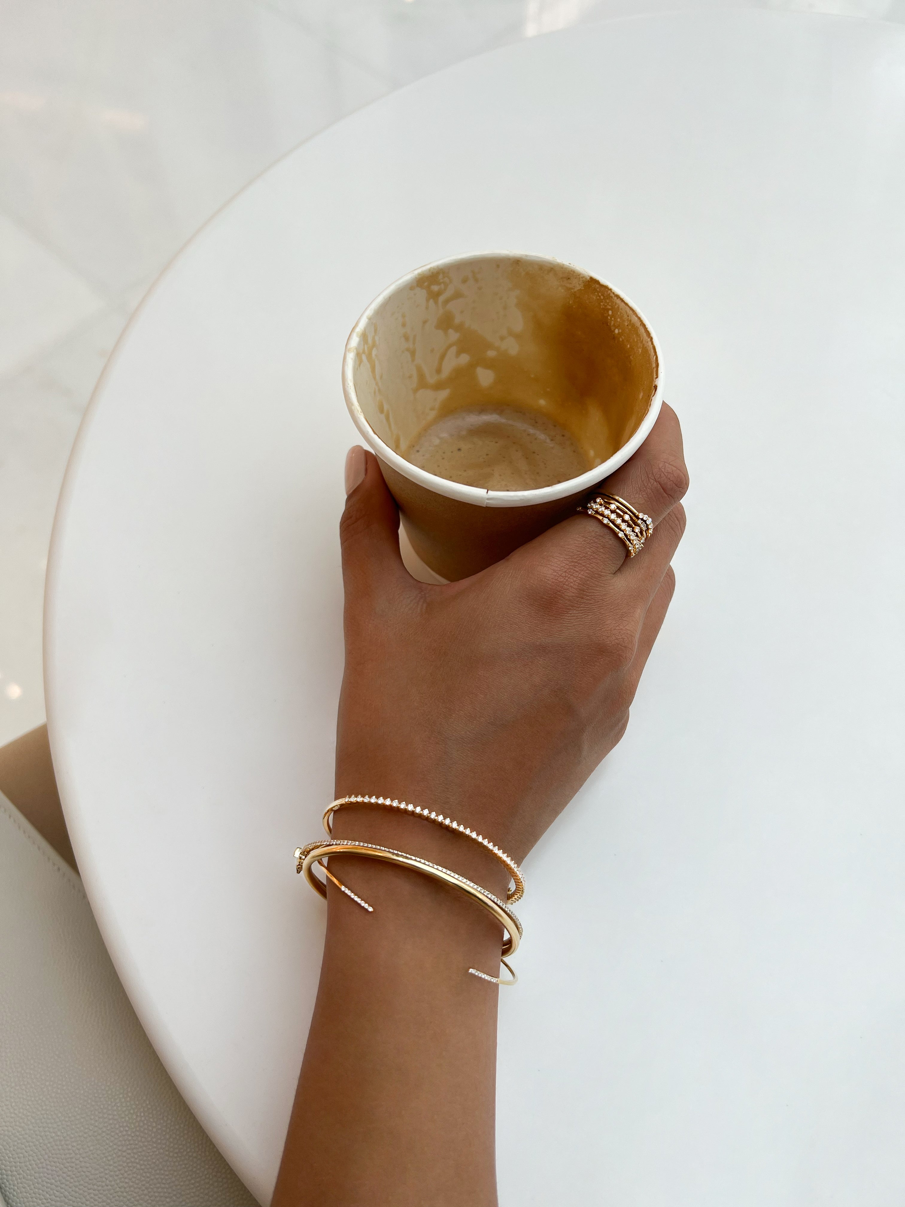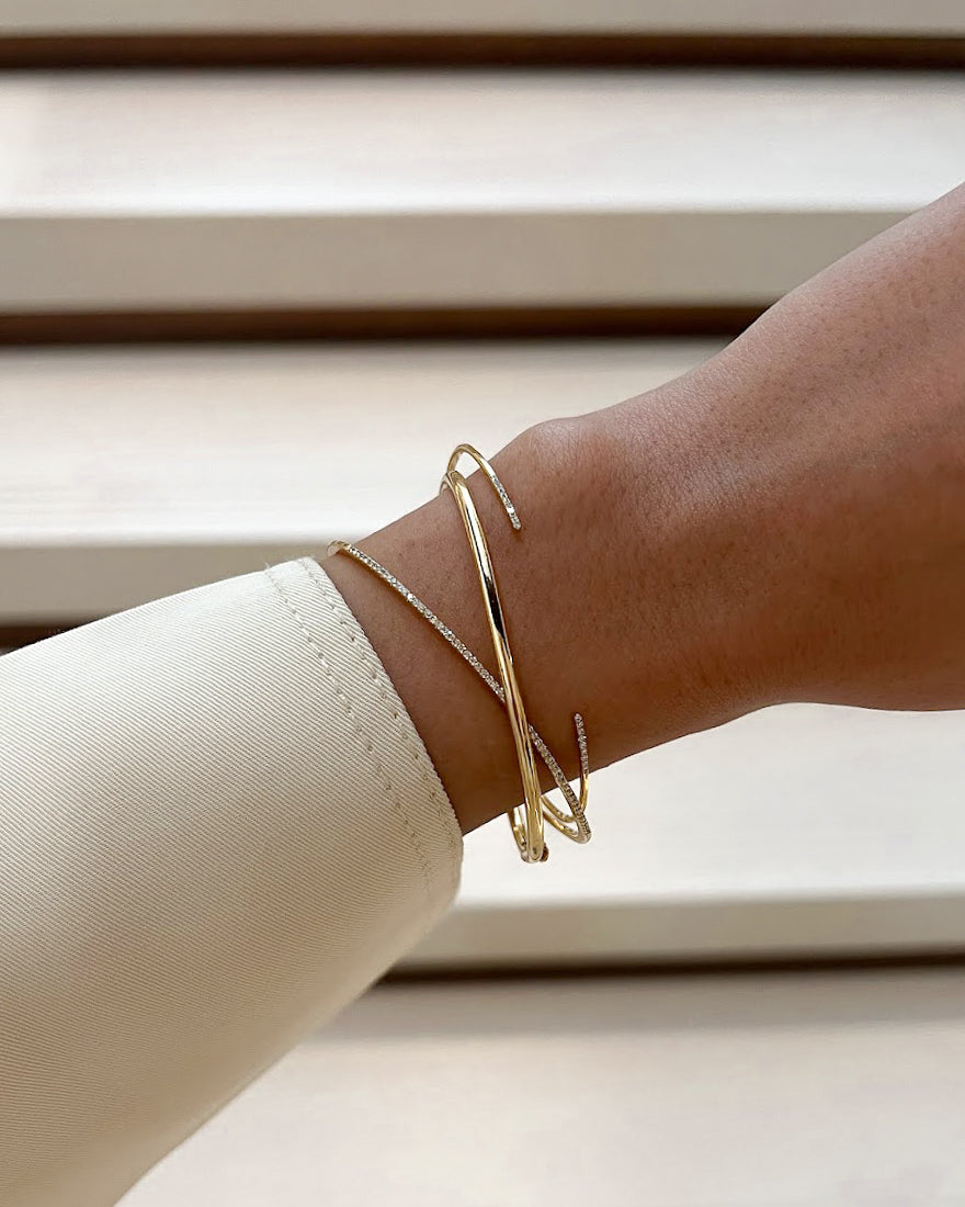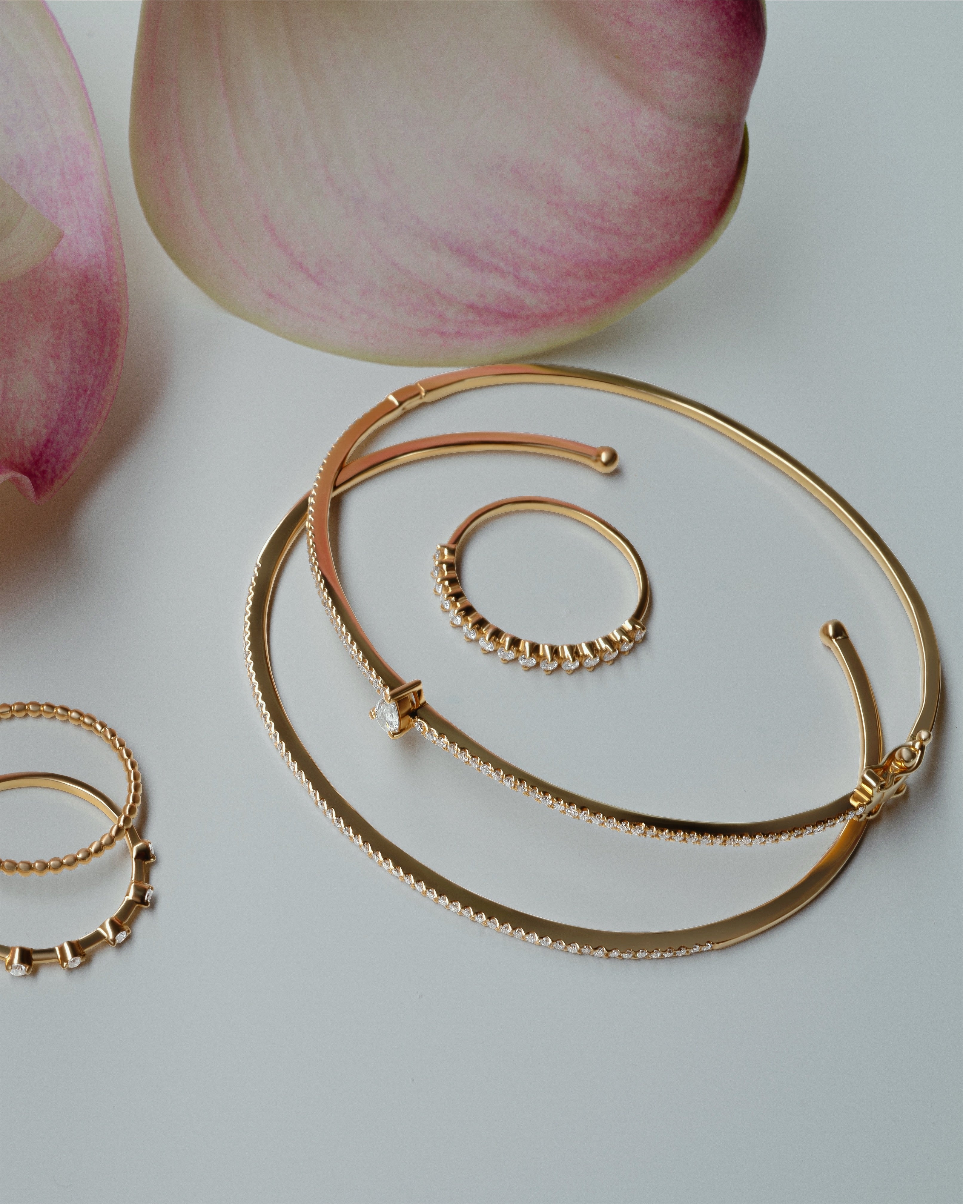 The Whisper Diamond Cuff is defined by its barely-there silhouette and refined simplicity. Crafted in solid 18k gold and accented with natural diamonds, it is designed to feel light, quiet, and intentional. A delicate statement that sits close to the skin, this cuff embodies softness through precision rather than excess.