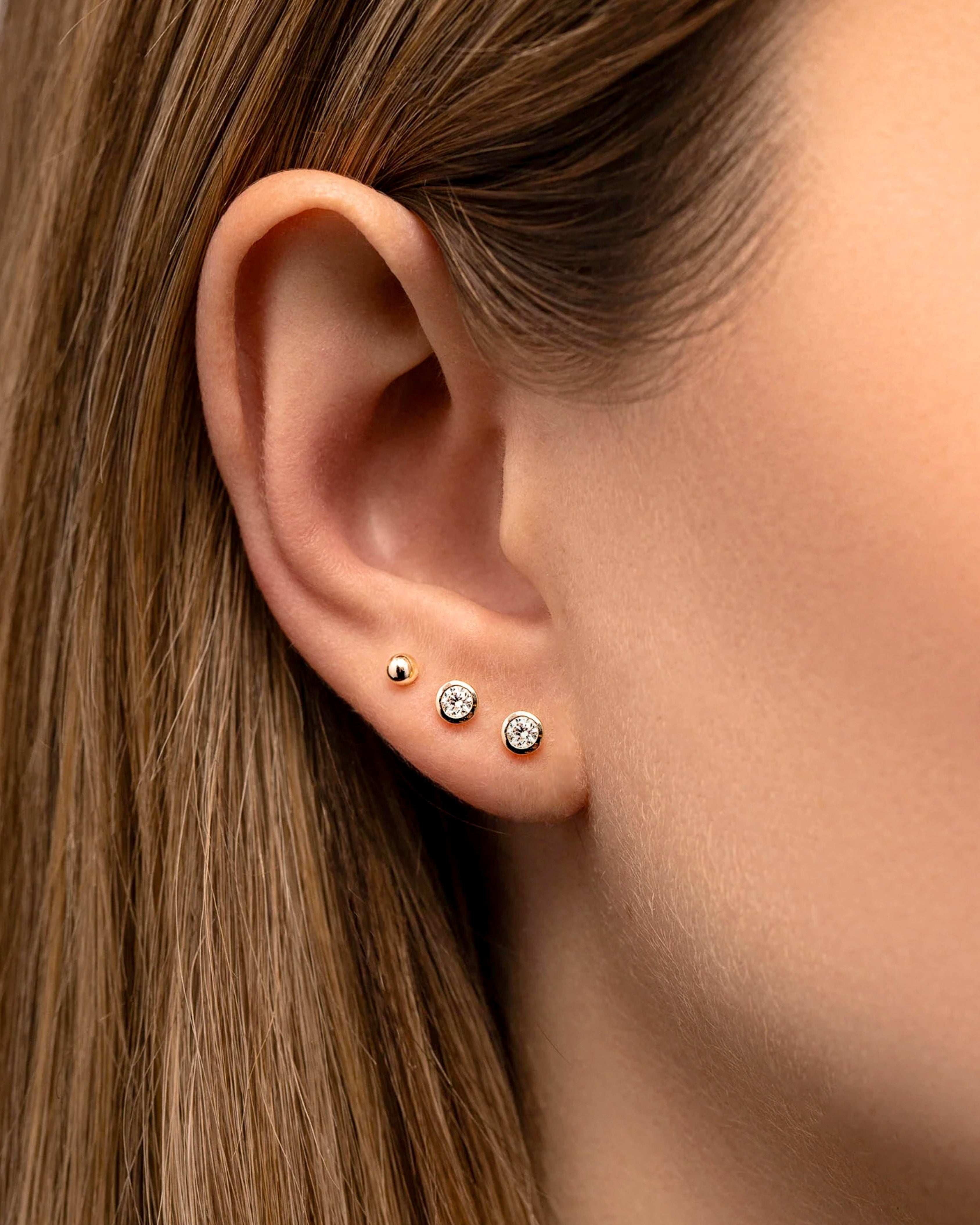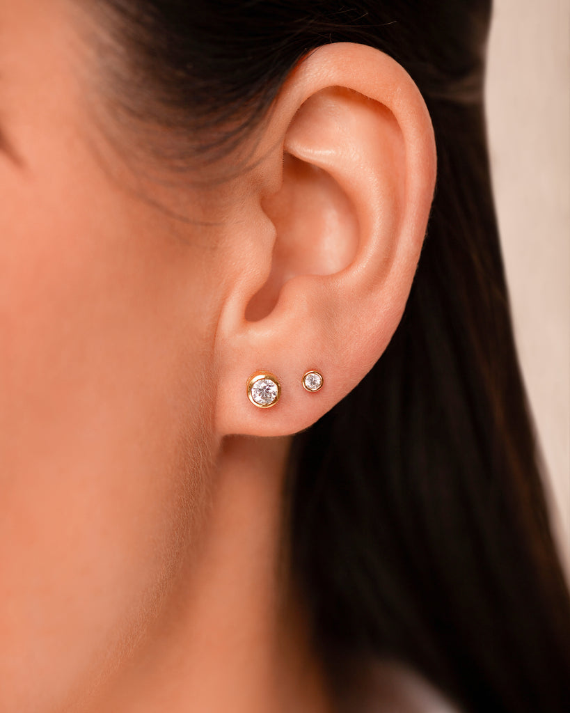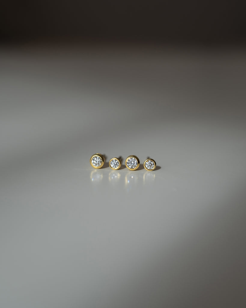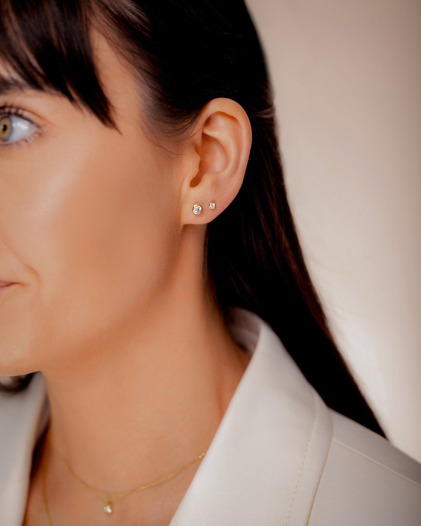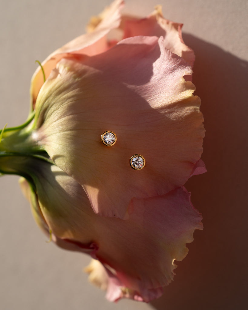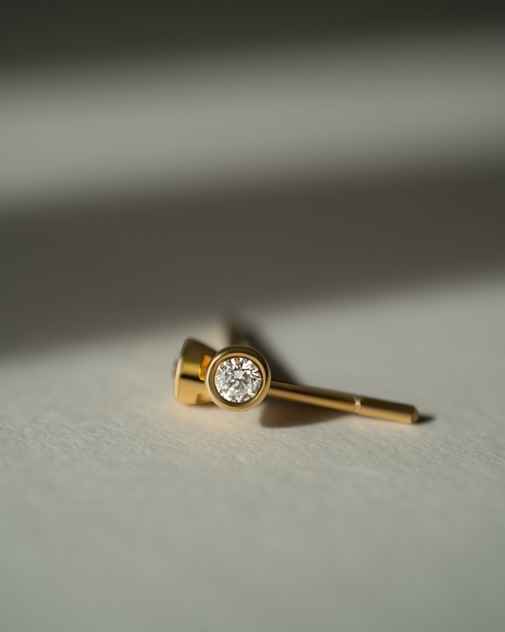 Timeless and refined, the Bezel Stud Mini features 0.1 carat natural diamonds set in solid 18K gold. Designed for everyday wear, these studs balance sparkle with simplicity — comfortable, durable, and crafted to last a lifetime.
