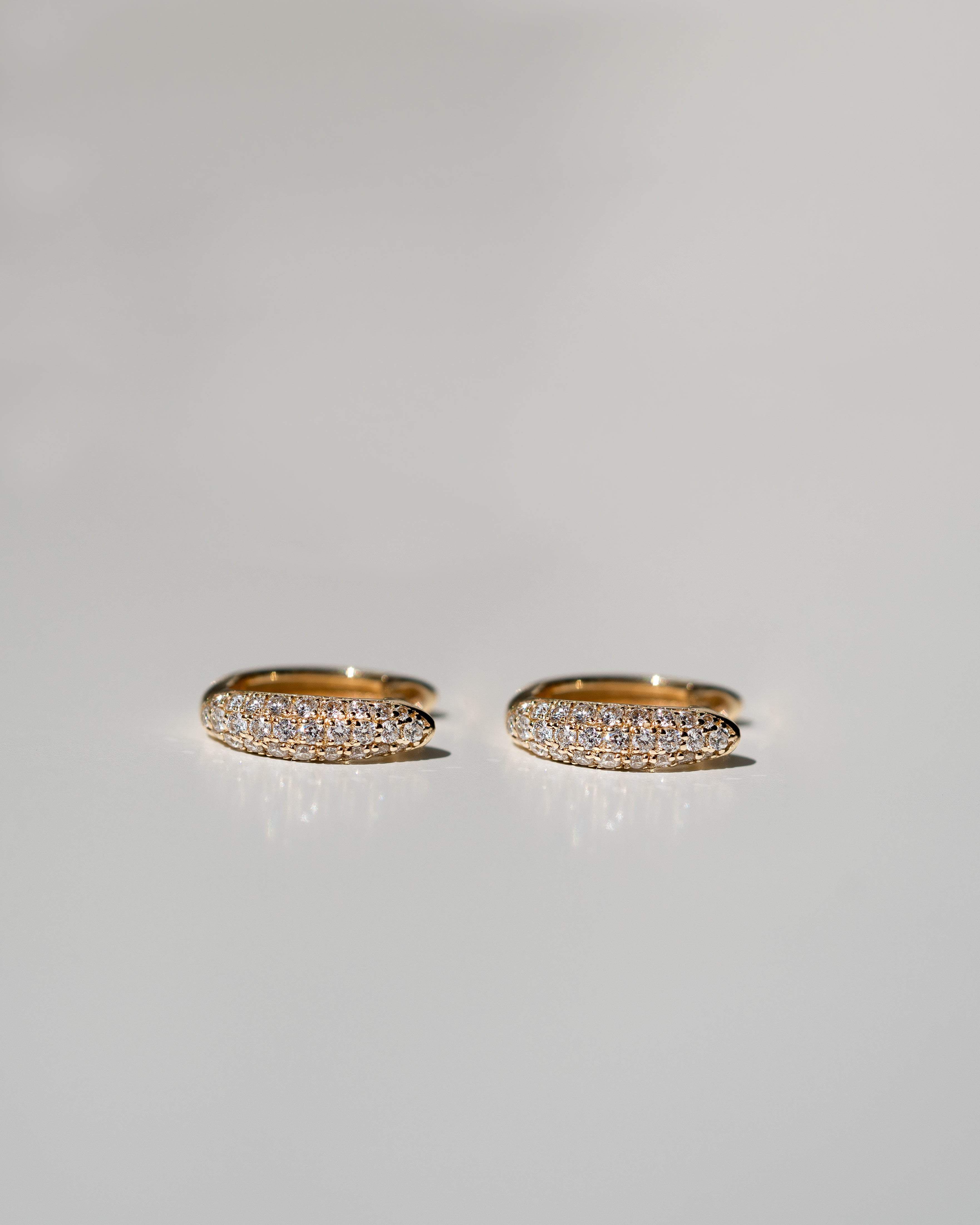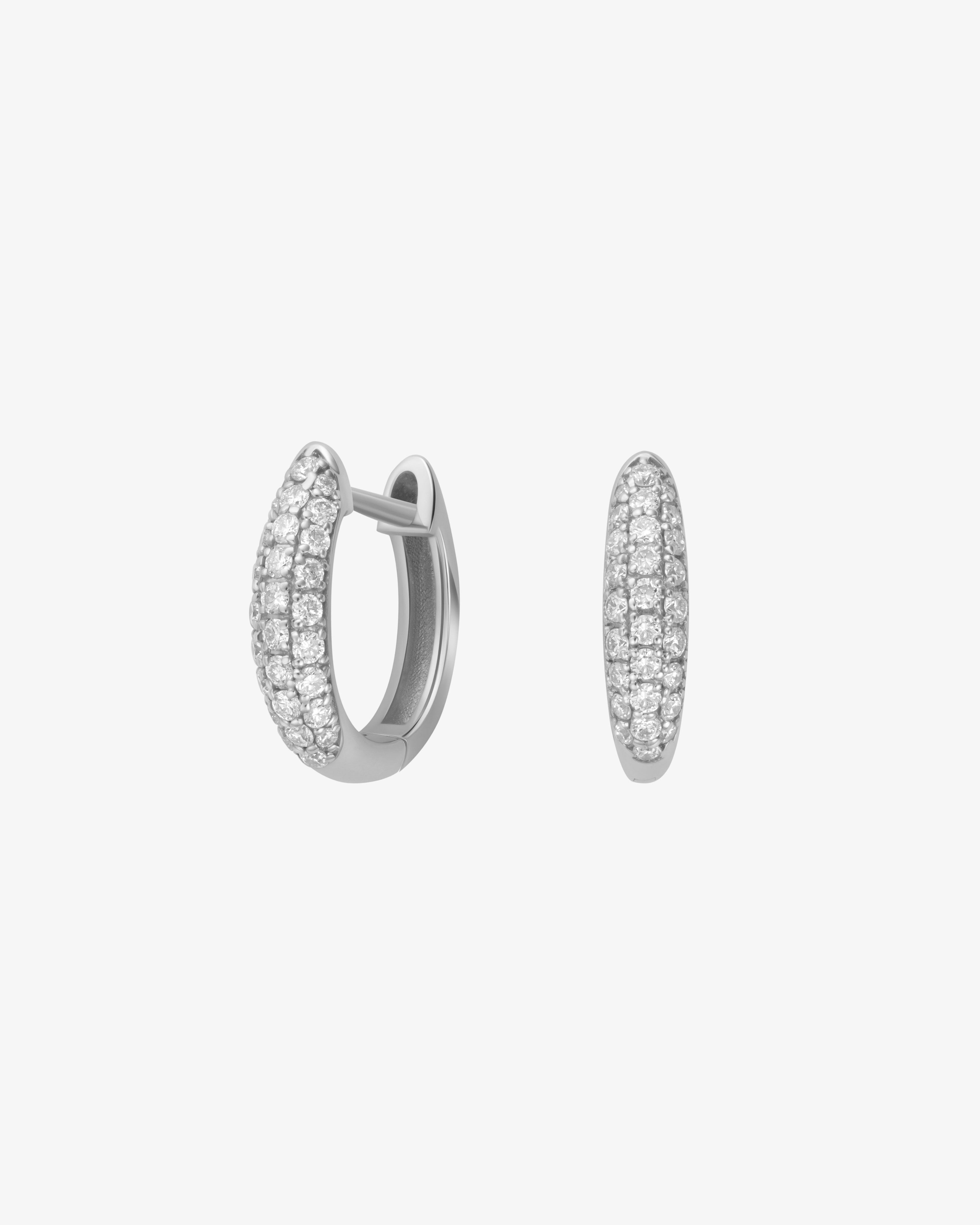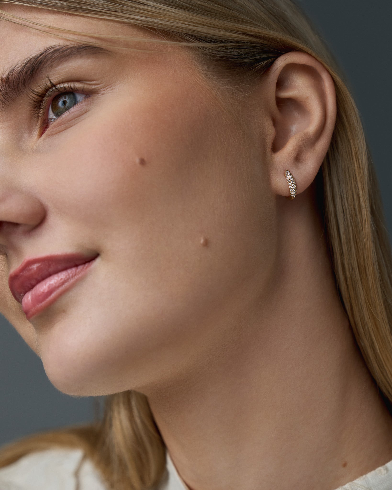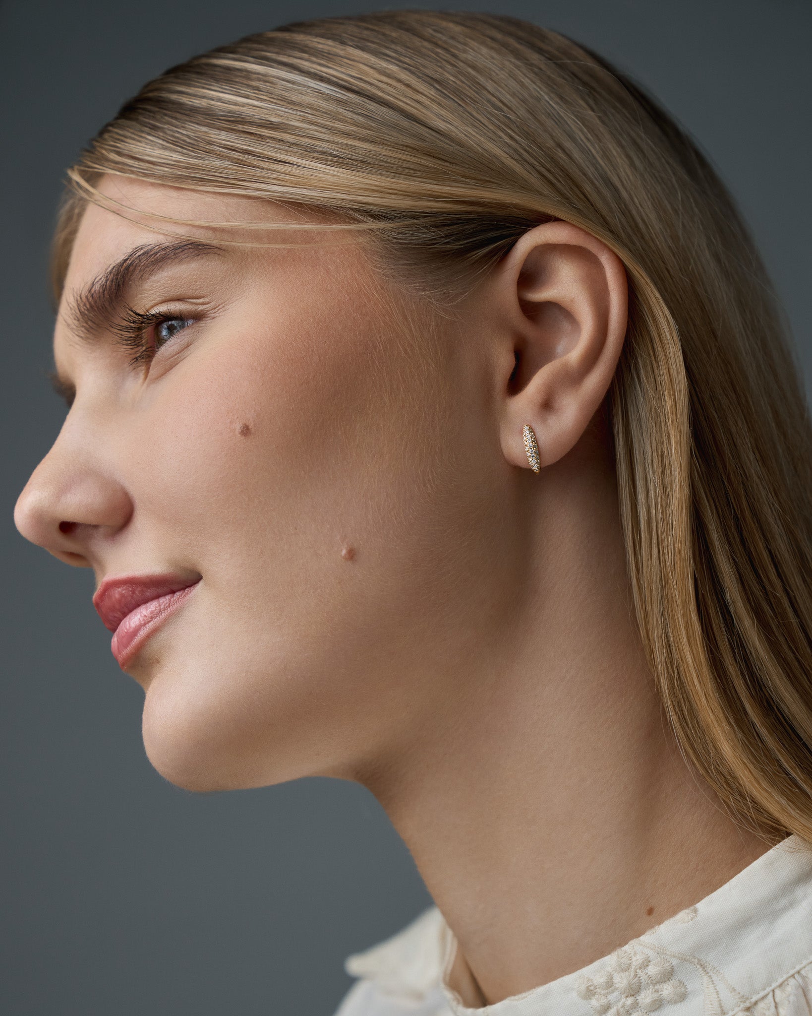 A sculpted dome of brilliance, the Diamond Dome Huggies bring soft curves and pavé sparkle together in perfect harmony. Shimmering from every angle, their dome shape catches the light with ease, giving a refined silhouette that feels both elegant and feminine yet minimal. An essential to wear every day and treasure for a lifetime.