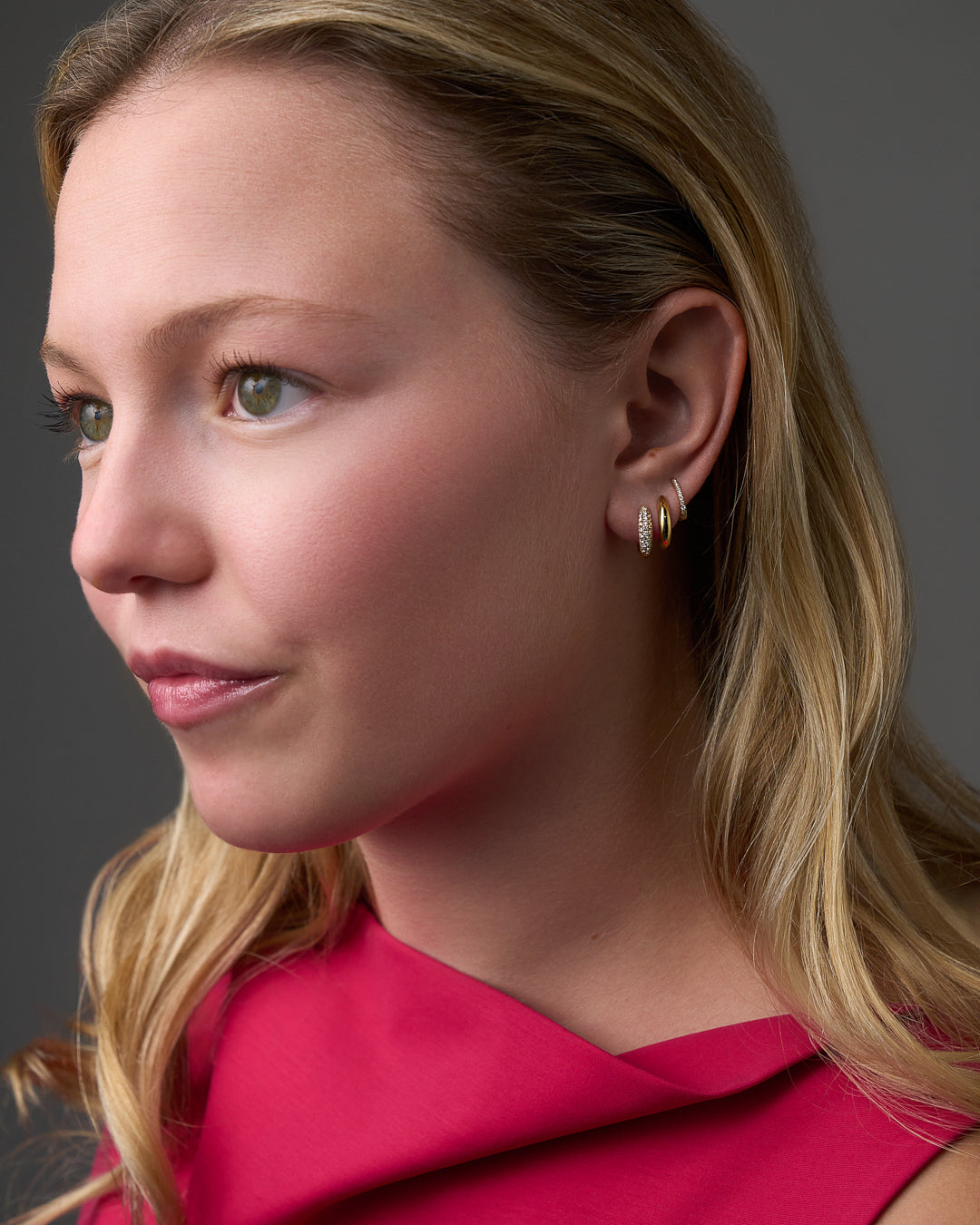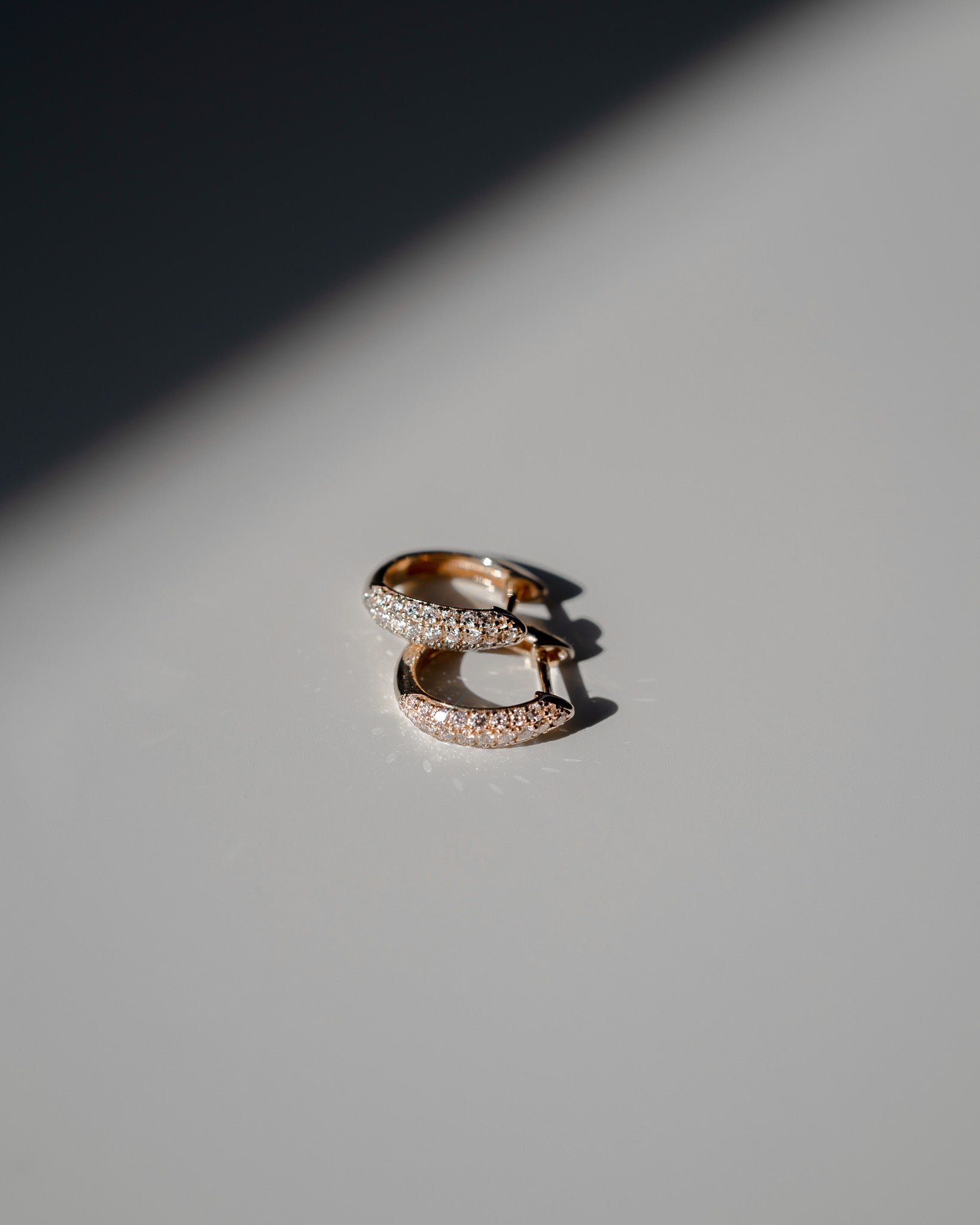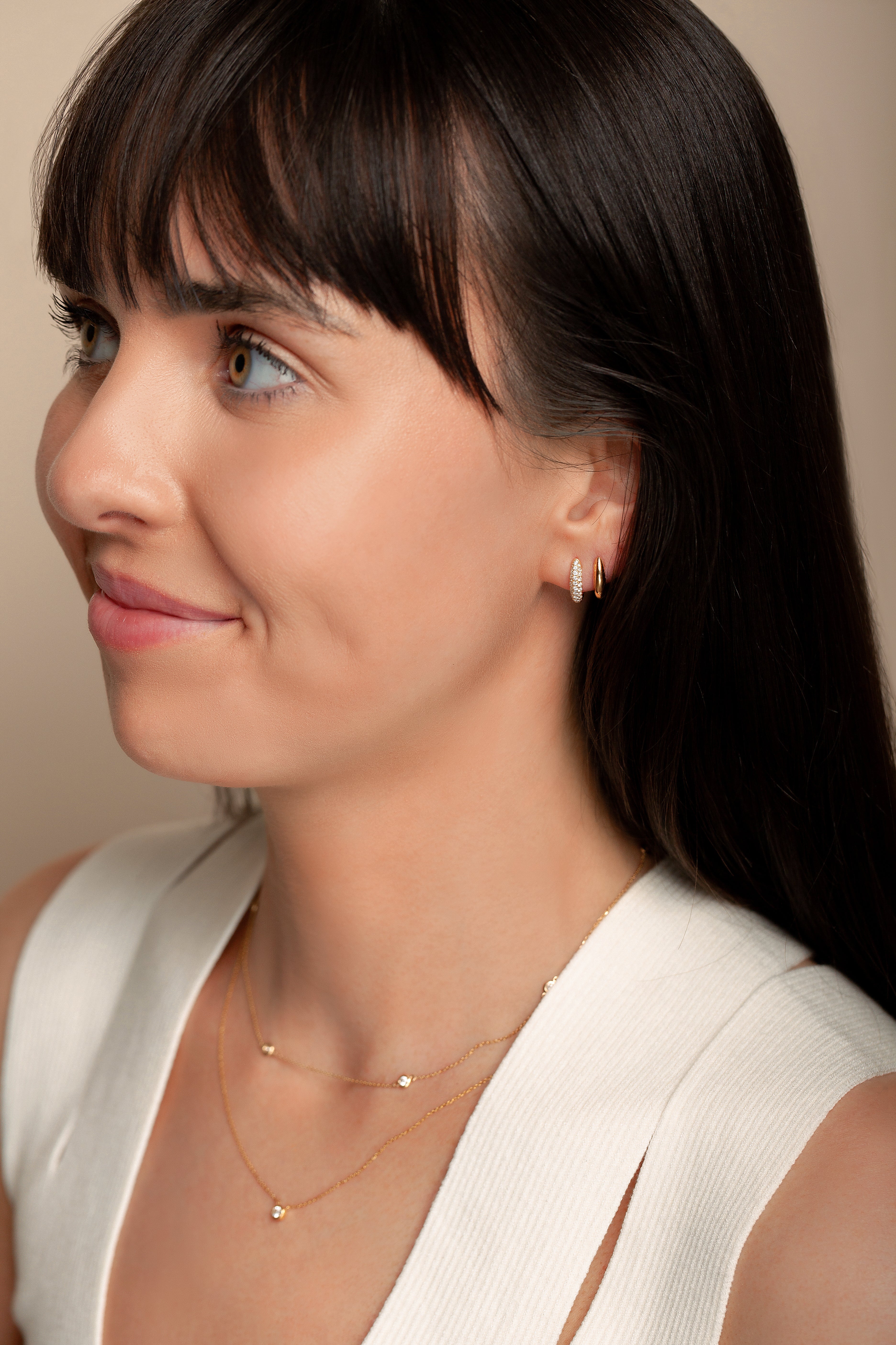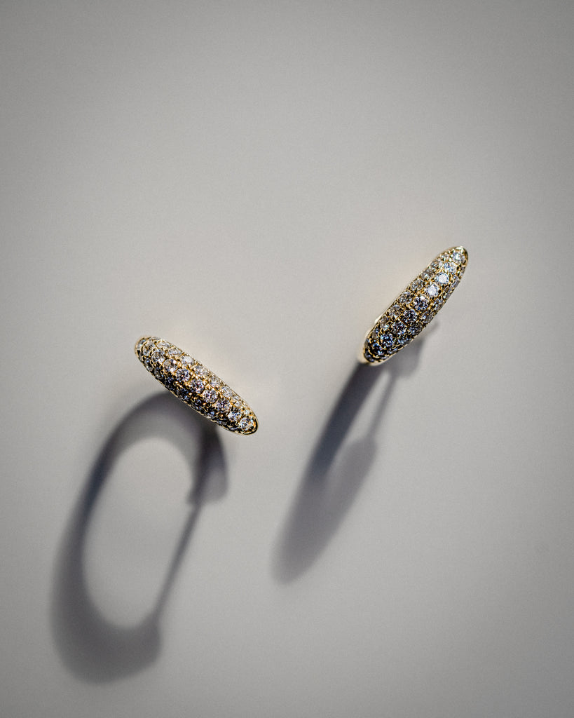 A sculpted dome of brilliance, the Diamond Dome Huggies bring soft curves and pavé sparkle together in perfect harmony. Shimmering from every angle, their dome shape catches the light with ease, giving a refined silhouette that feels both elegant and feminine yet minimal. An essential to wear every day and treasure for a lifetime.