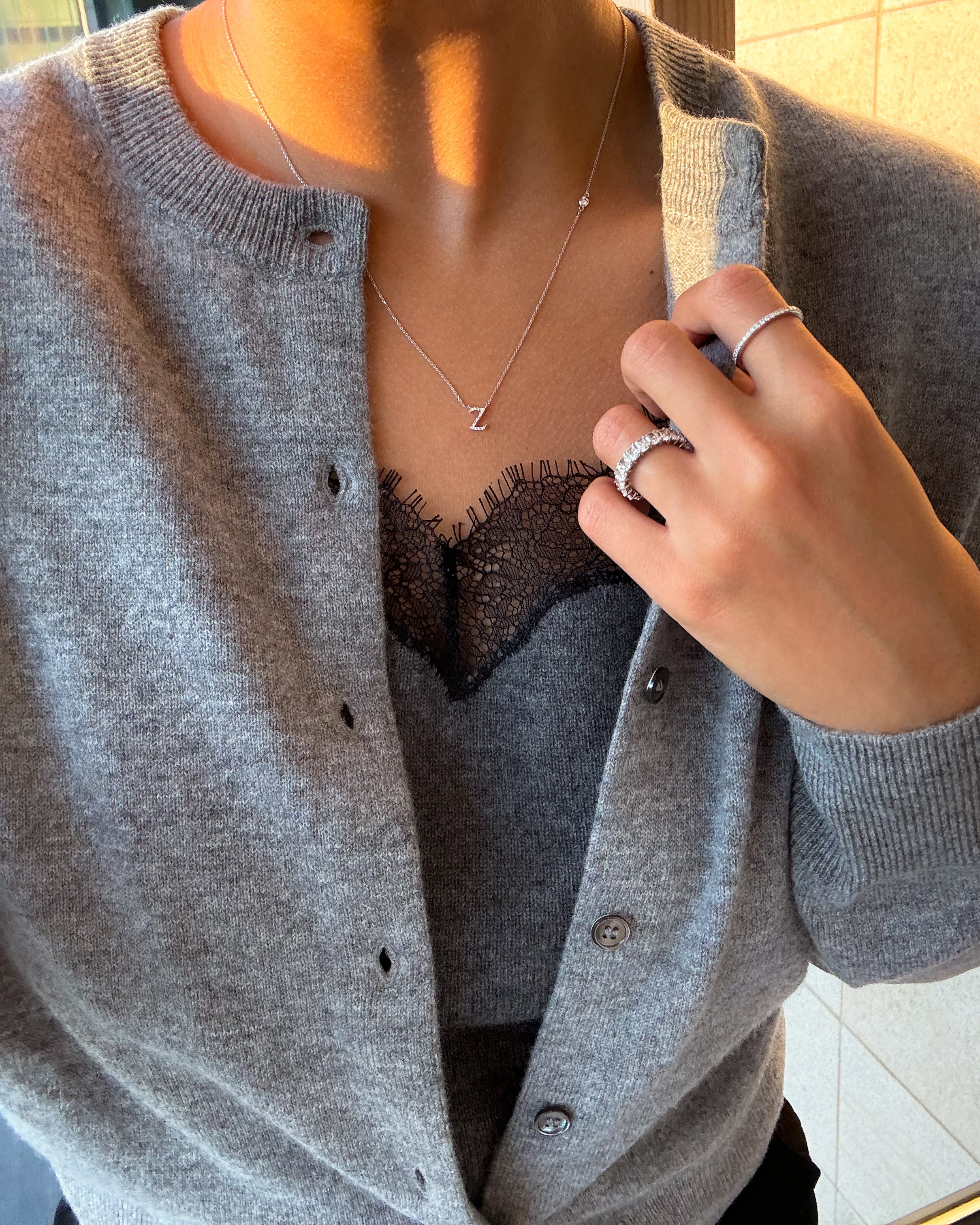 - Diamond weight of approximately 0.08 - 0.10 carat (depending on alphabet)