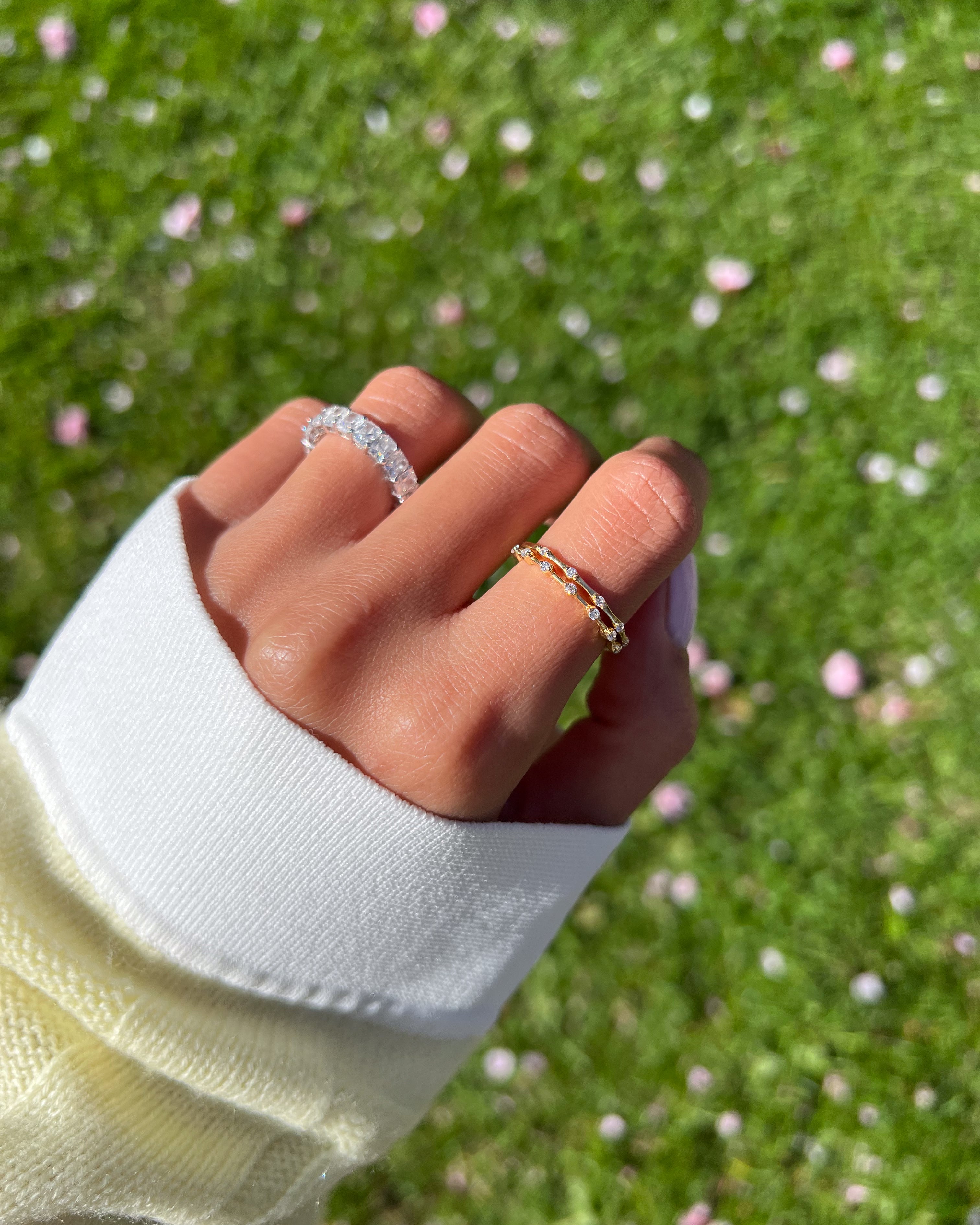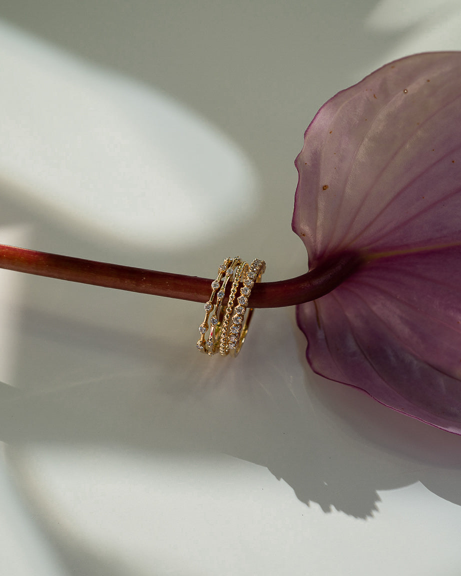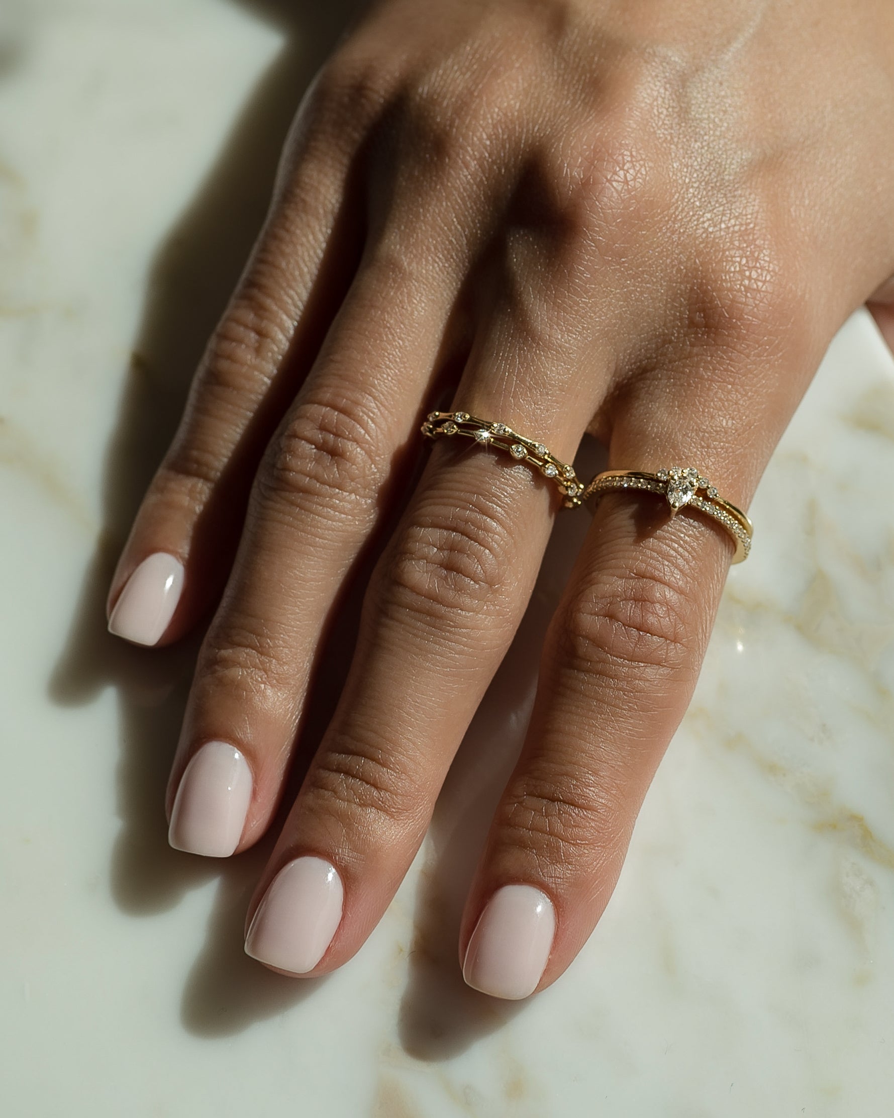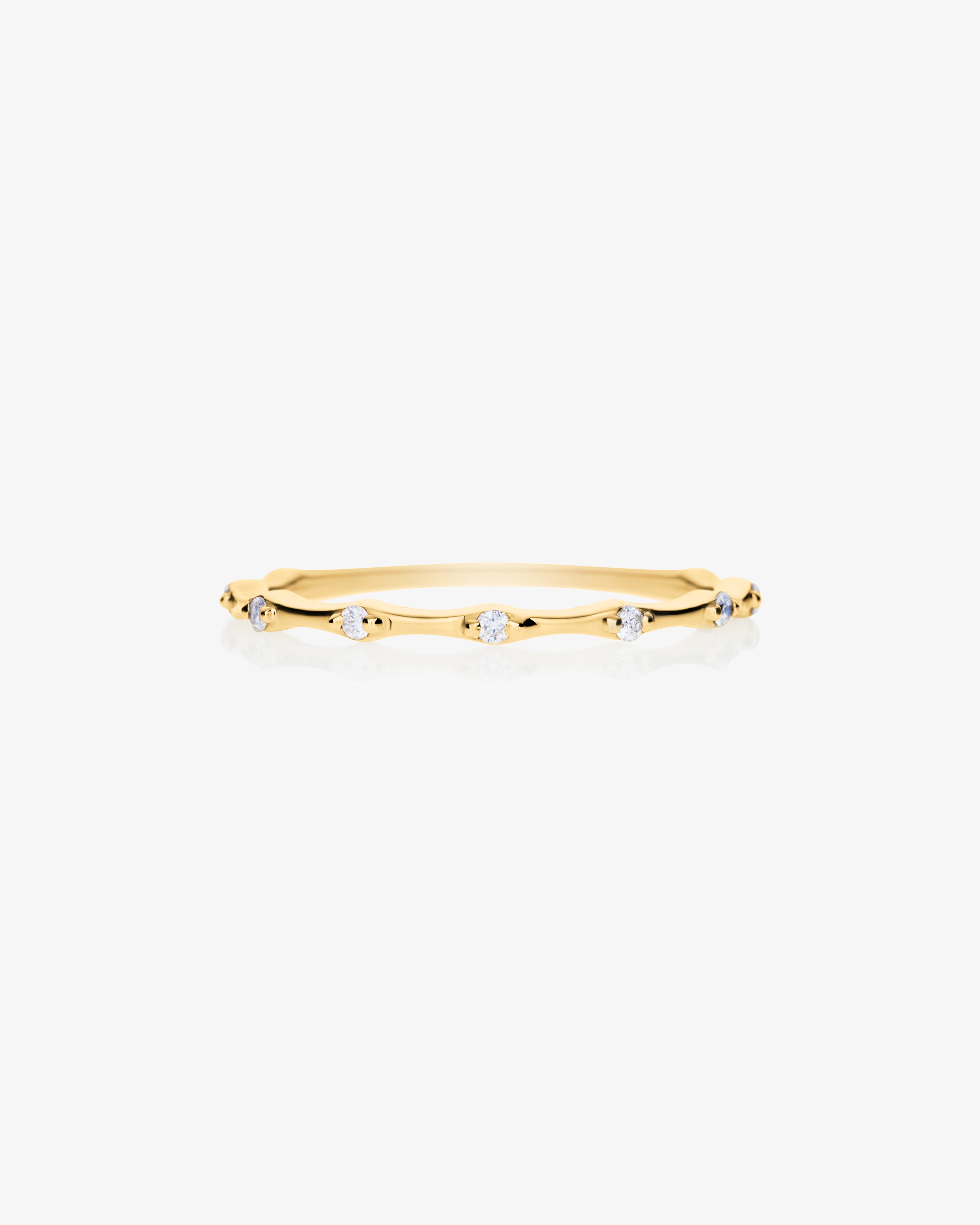 Apricity is a contemporary 18k gold band defined by soft curves and delicate diamond accents. Minimal yet feminine, it balances quiet detail with a confident, modern presence.