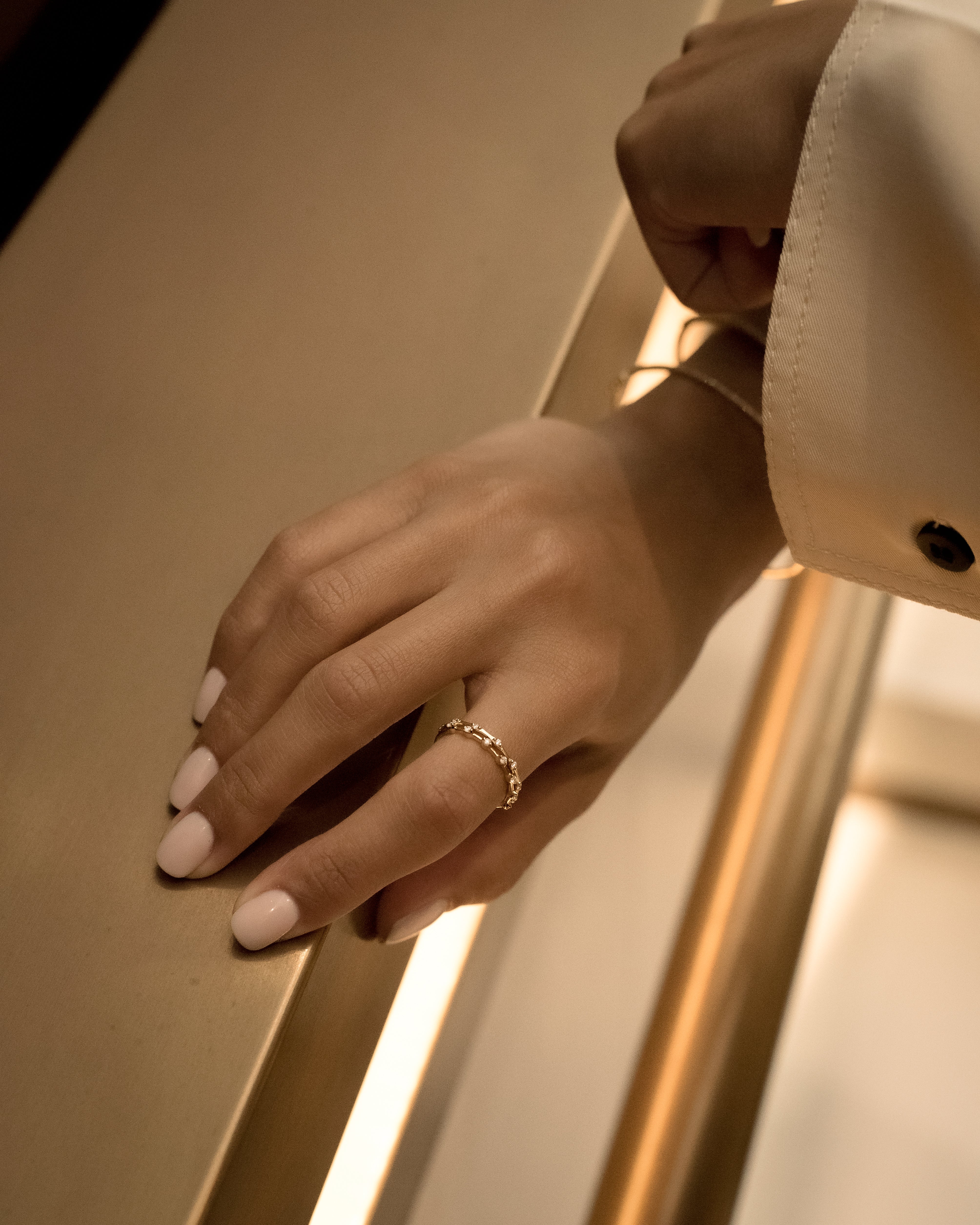 Set with natural diamonds and finished in polished 18k gold, the design is intentionally refined and made to endure. A subtle statement for those drawn to understated elegance and modern simplicity.